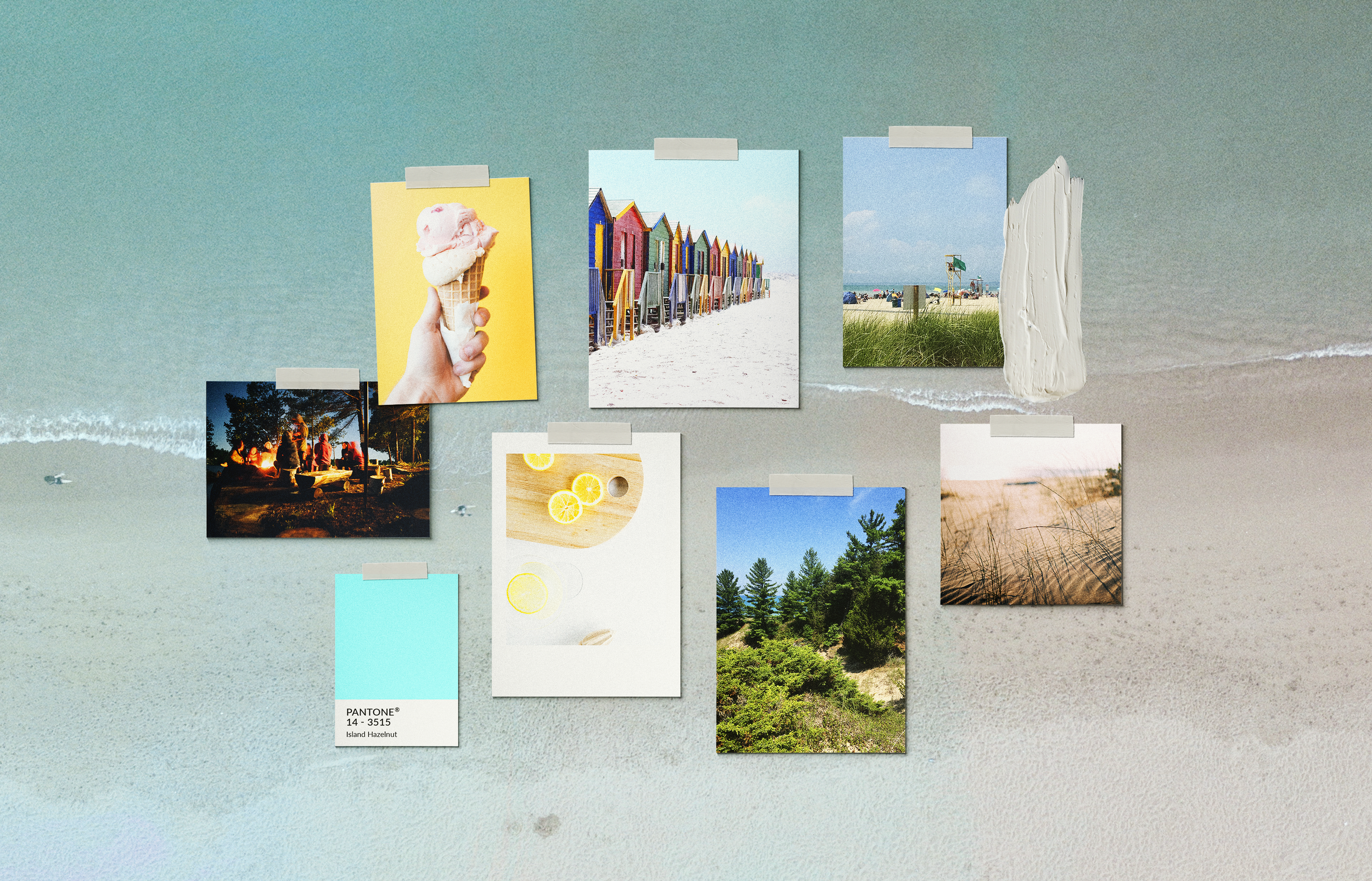 Here's the mood board. I wanted to go with a really bright, beachy and colourful look and one that would stand stand out from the relaxing vibes of many other beach houses. A really stripped back identity that would put the feeling of being on vacation centre stage and ensure that the whole thing felt very fun and fresh.